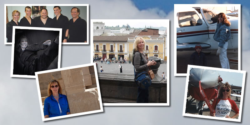 Flying and science are evident themes in my recent manuscripts. I live in a family of military, test, and commercial pilots, and learned to fly (recreational aircraft) while my husband went to test pilot school. From flying as a child, to piloting my infant son in a small plane to grandma's house, and now flying my own plane to see grandkids, the adventures in the skies haven't stopped. Keeping up with my boys, I also learned how to dive and survived sparring for fifteen years as a black belt in Kenpo Kararte.